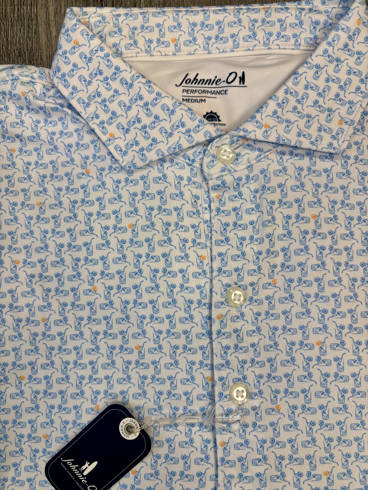 93% Polyester, 7% Spandex Three button placketSide ventsLeft Chest OpenEmbroidered logo on center back yokeMoisture wickingUPF 50 Sun Protection