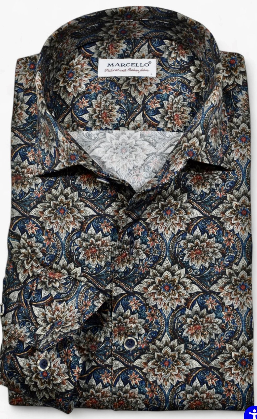 Experience luxurious comfort and beauty with the Marcello FloraBurst Roll Collar. Made with soft cotton sateen, its outstanding floral print pattern showcases rich, warm colors. The Marcello one piece roll collar maintains a perfect posture, ensuring a stylish look all day long.